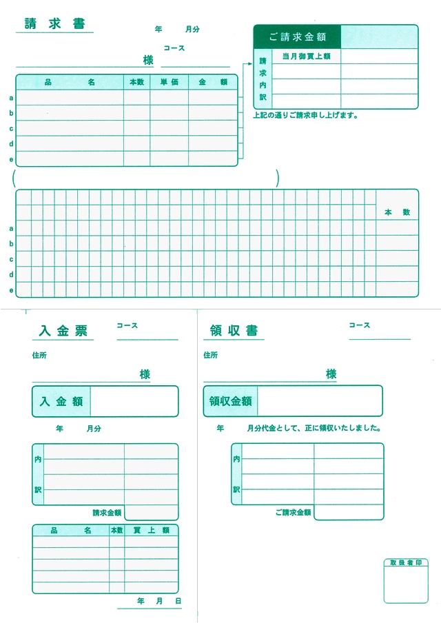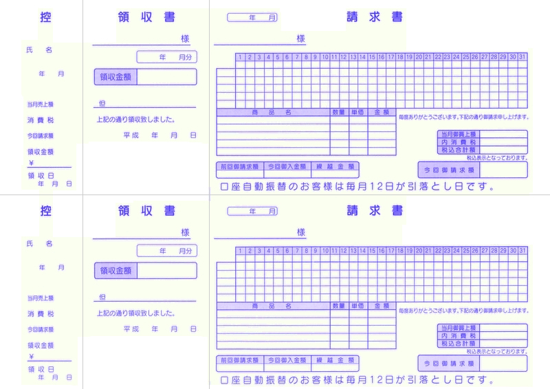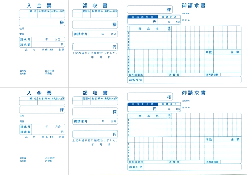 ■ 請求書用紙は、A5縦型(ミシン目入り)・レーザープリンター仕様です。